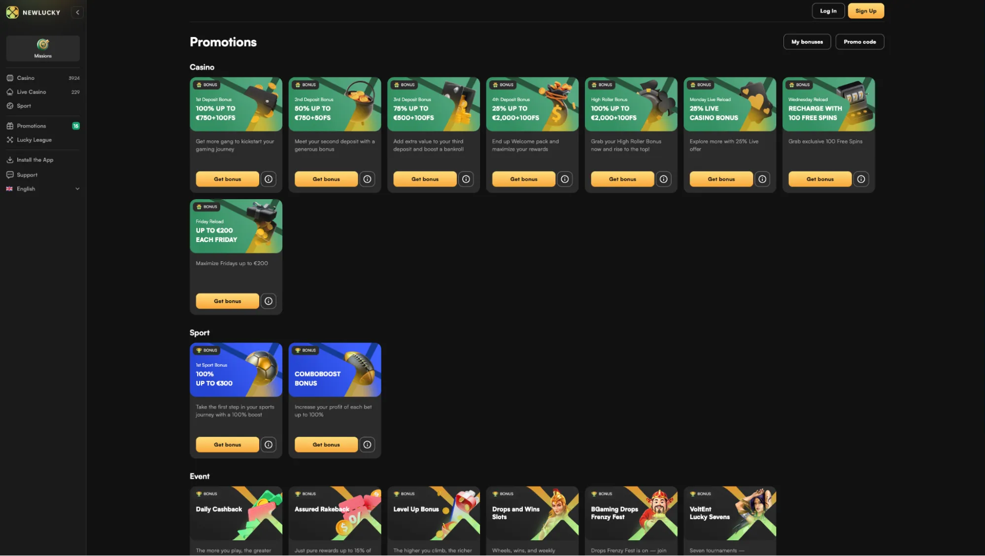 - NewLucky League VIP-programma met hoge cashback en rakeback tot 20%.