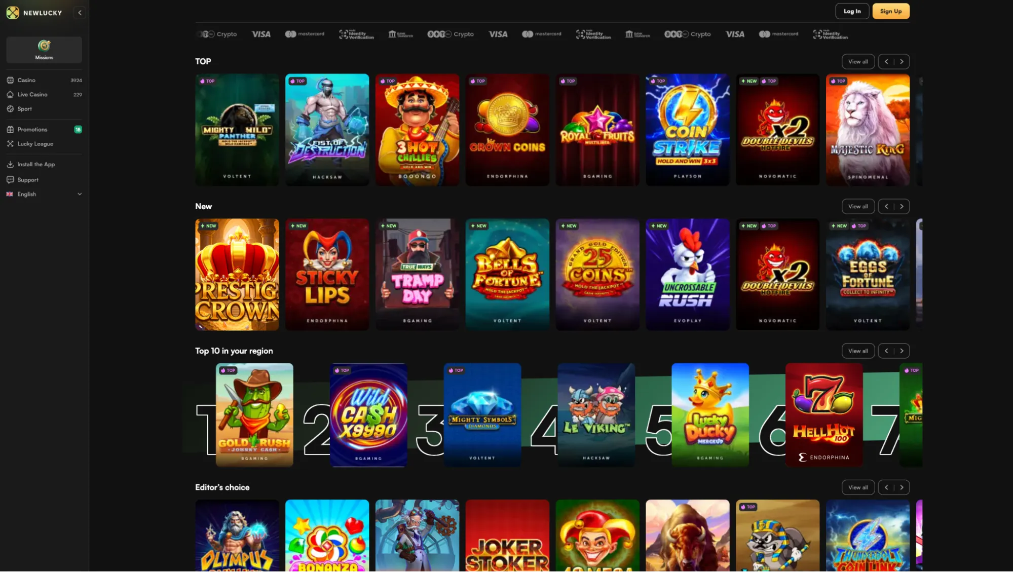 NewLucky Casino is een snelgroeiend online casino dat spelers verrast met een indrukwekkend aanbod van meer dan 5500 spellen, van populaire slots tot live casinospellen. Het casino staat bekend om aantrekkelijke bonussen, waaronder een welkomstbonus tot € 4000 en honderden gratis spins.